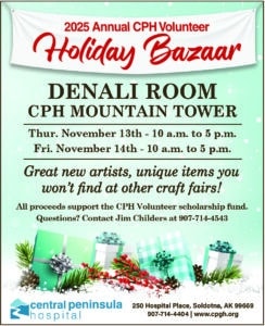 All proceeds support the CPH Volunteer scholarship fund. Contact Jim Childers at 907-714-4543 with any questions.