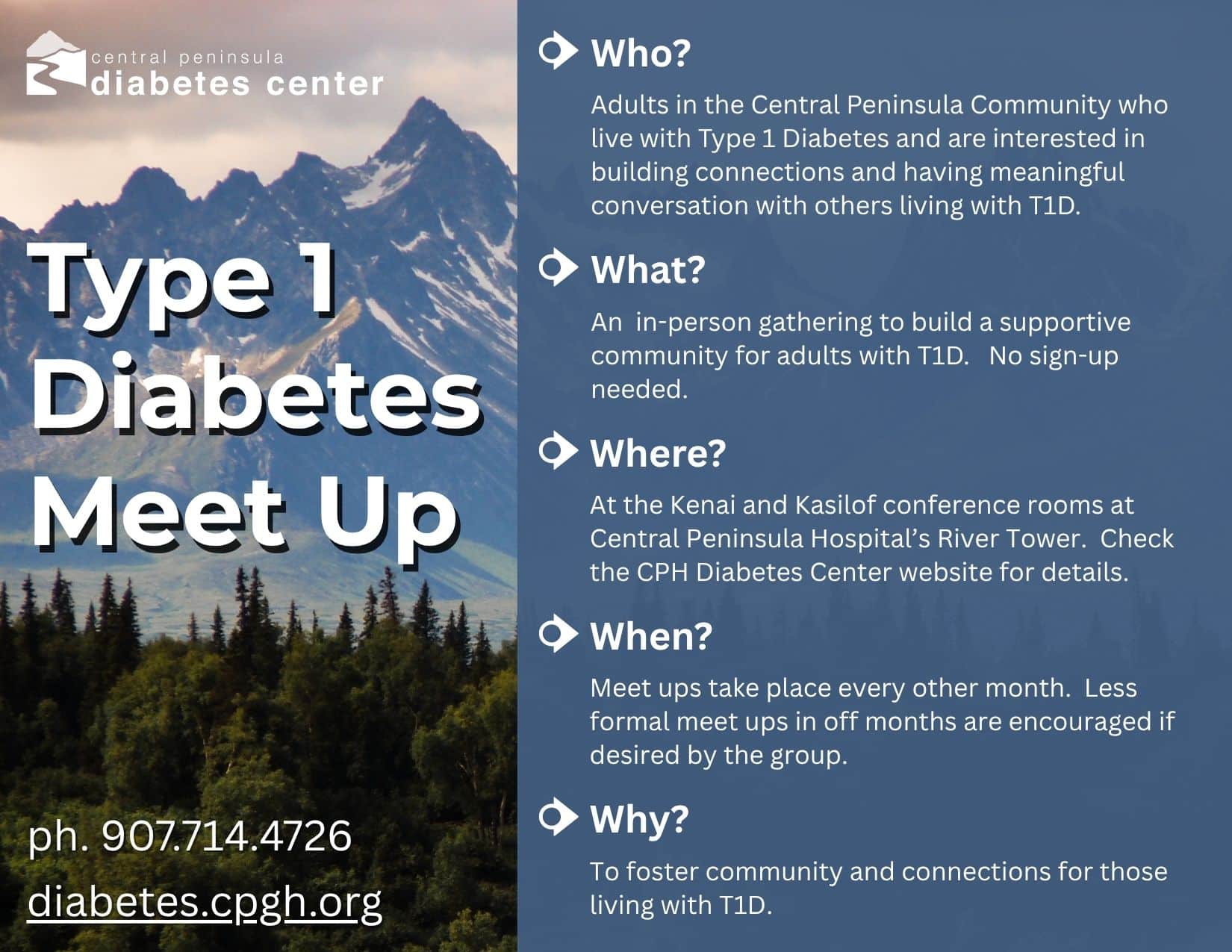 Who? Adults in the Central Peninsula Community who live with Type 1 Diabetes and are interested in building connections and having meaningful conversation with others living with T1D. What? This […]